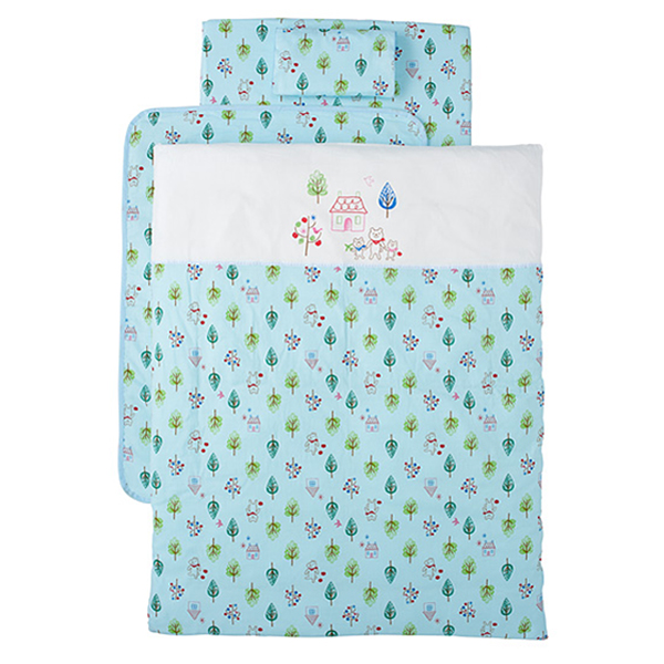 Wガーゼプリント 洗える布団10点セット フォレストフレンズ (サックス)